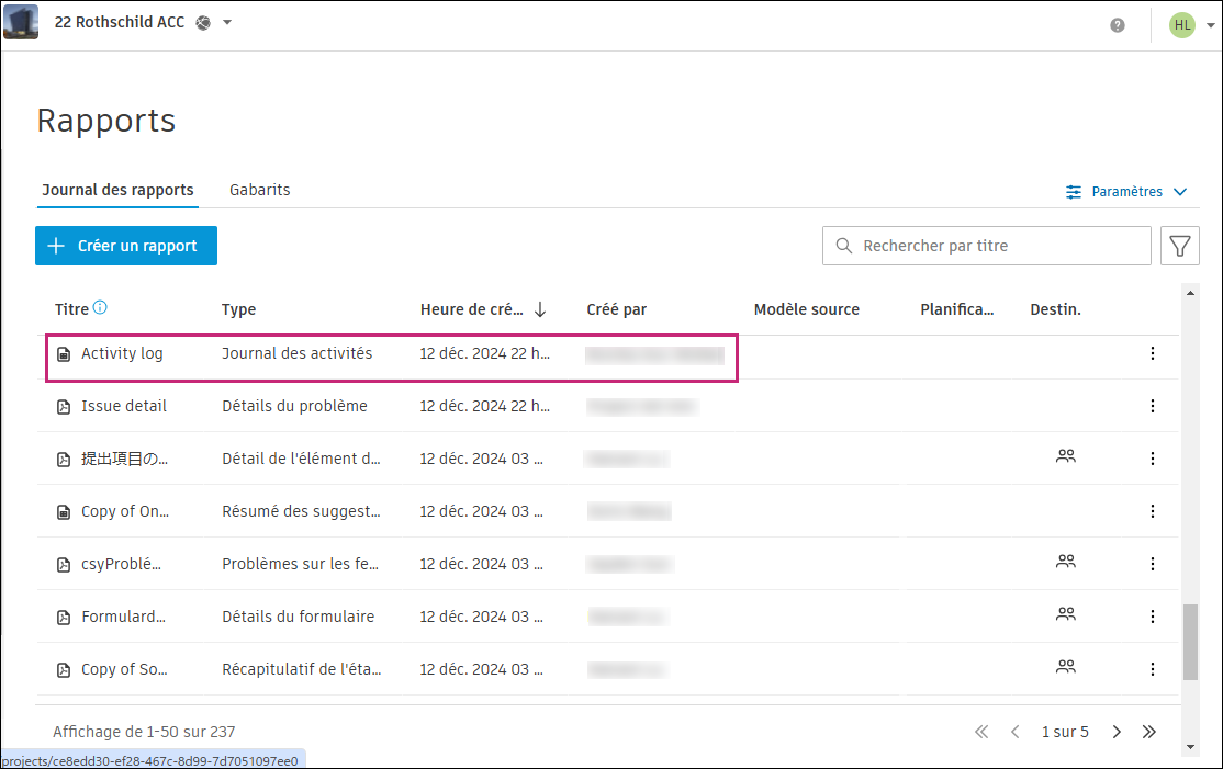 Vous pouvez également accéder au rapport dans le Journal des rapports.