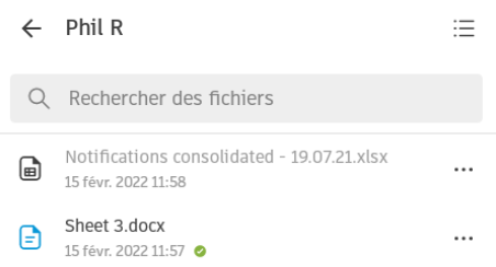Un crochet vert s'affiche en regard d'un fichier téléchargé et d'un dossier dans lequel tous les fichiers contenus sont téléchargés. Dans l'image ci-dessous, le fichier Sheet3.docx est téléchargé et prêt à être affiché. L’autre fichier est grisé, car il n’est pas téléchargé et ne peut donc pas être affiché.