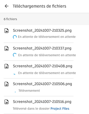 | Téléversement en attente | Le fichier est mis en file d’attente pour le téléversement. |