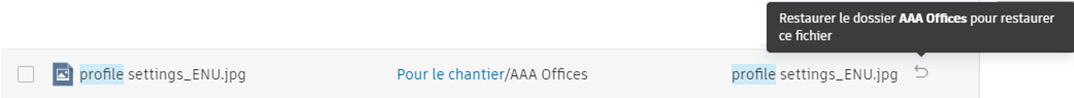 Placez le curseur sur l'icône de restauration désactivée pour afficher le nom du dossier parent à restaurer.