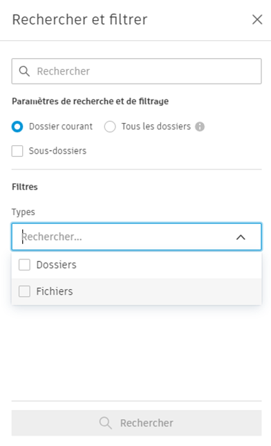 Entrez les termes de recherche pour rechercher le nom et le nom de fichier du ou des articles supprimés. Sélectionnez les dossiers à rechercher et ajoutez des filtres si nécessaire.