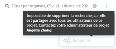 en regard de la recherche enregistrée partagée pertinente.Vous pouvez supprimer une recherche enregistrée qu’un autre administrateur de projet a partagée avec vous de façon individuelle.