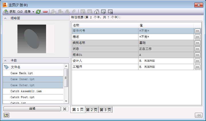 使用该功能可以查看指定文件的相关 Vault 详细信息和特性,从而使得在模型的整个生命周期内可以更轻松地参考管理这些文件所需的信息。数据卡功能提供了指定给一个文件或一组文件的元数据的摘要,通过单点访问即可方便地获取这些摘要。使用数据卡,可以确定文件的 Vault 状态、查看文件的缩略图以及查看和修改特性信息,而无需离开 Inventor 应用程序。