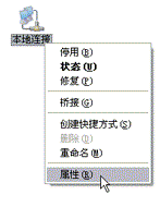 - 在“本地连接”上单击鼠标右键,然后选择“属性”。