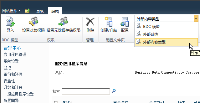 在管理中心中,单击“应用程序管理”下面的“管理服务应用程序”。