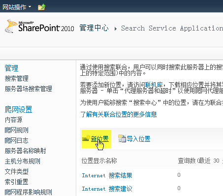 在左侧的“查询和结果”的下面,单击“联合位置”。