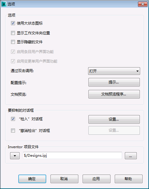 每个对话框均有与之关联的设置。可以为这些对话框指定默认值,并选择在 Vault 中处理文件时对话框是否主动进行提示。