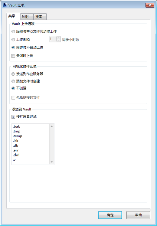 您可以使用“Vault 上传选项”来配置何时将同步的文件添加到 Vault 中。