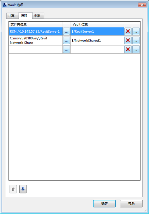 使用此选项,可以将任何本地、网络或 Revit 服务器文件夹映射到任意 Vault 文件夹。
