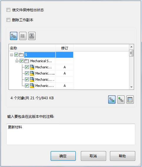 使用“检入”将文件首次添加到 Vault 中并检入您检出的文件。