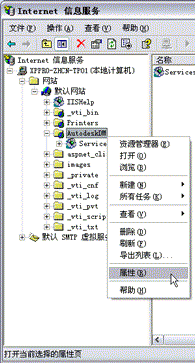 - 在“默认网站”上单击鼠标右键,然后选择“属性”。