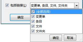 可使用链接将数据包含在数据收集操作(如“获取/检出”、“检入”、“检出”和“项目报告”)中。“包括链接”命令位于上述命令的“设置”对话框中。对于每种对象类型,所包括的数据如下所述。