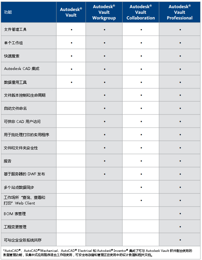 Autodesk Vault 版本允许您根据特定的业务需求选择功能和工作流解决方案。