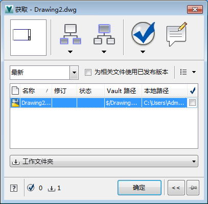 展开的“获取/检出”对话框 - AutoCAD Vault 附加模块 2014