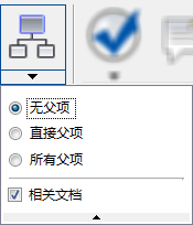 单击“包含父项”按钮将指定的父文件类型相关文档添加到当前文件列表中。 单击“包含父项”按钮下方的下拉箭头,更改当单击该按钮时所包含的父项类型(如果有)。 通过再次单击该按钮可禁用功能。将忽略所有包含设置,直到再次启用该按钮。 |