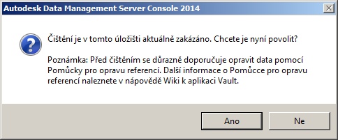 Po instalaci aktualizace Service Pack 2 aplikace Vault 2012 a aktualizace Service Pack 1 aplikace Vault 2013 je funkce čištění pro všechna migrovaná úložiště automaticky zakázána. Je zakázána, aby bylo možné před jejím opětovným použitím opravit existující data (která mohou mít volné vztahy souborů).