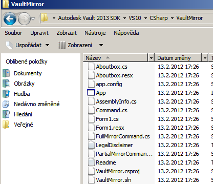 - V aplikaci Vault 2012 lze také ze složky klienta získat instalaci sady SDK (např. C:\Program Files\Autodesk\Vault Professional 2012\SDK)
