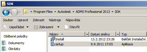 - v případě, že používáte 32bitový operační systém, do umístění C:\Program Files\Autodesk\ADMS (verze produktu) 2012\SDK,