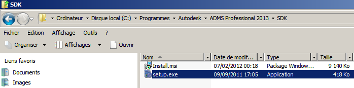 - c:\Program Files\Autodesk\ADMS (version du produit) 2012\SDK pour un système d'exploitation de 32 bits