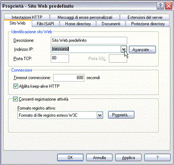 - Nella finestra di dialogo delle proprietà del sito Web predefinito, fare clic sulla scheda Sito Web.