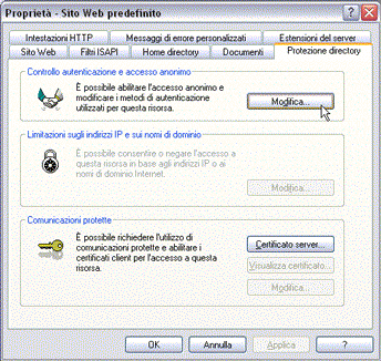 - Fare clic sulla scheda Protezione directory, quindi su Modifica.