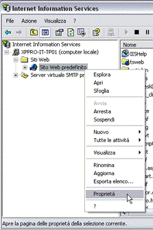 - Fare clic con il pulsante destro del mouse su Sito Web predefinito e selezionare Proprietà.