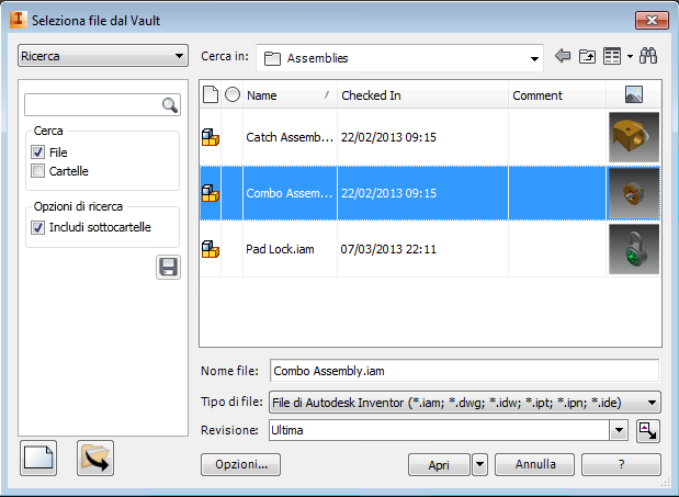 È possibile aprire qualsiasi file di Autodesk Inventor memorizzato in un vault.