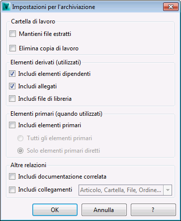 Quando si elimina la finestra di dialogo Archivia, è possibile specificare il modo in cui i file correlati vengono interessati dall'operazione corrispondente del Vault. L'archiviazione viene eseguita utilizzando le impostazioni specificate e senza richiedere l'intervento da parte dell'utente.