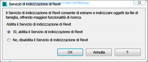È inoltre possibile selezionare Servizio di indicizzazione di Revit dal menu Azioni.
