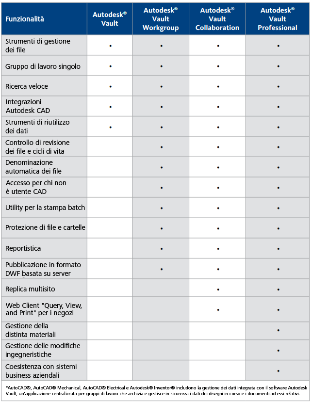 Le edizioni di Autodesk Vault consentono di scegliere le funzionalità e le soluzioni di flusso di lavoro in base alle specifiche esigenze aziendali.