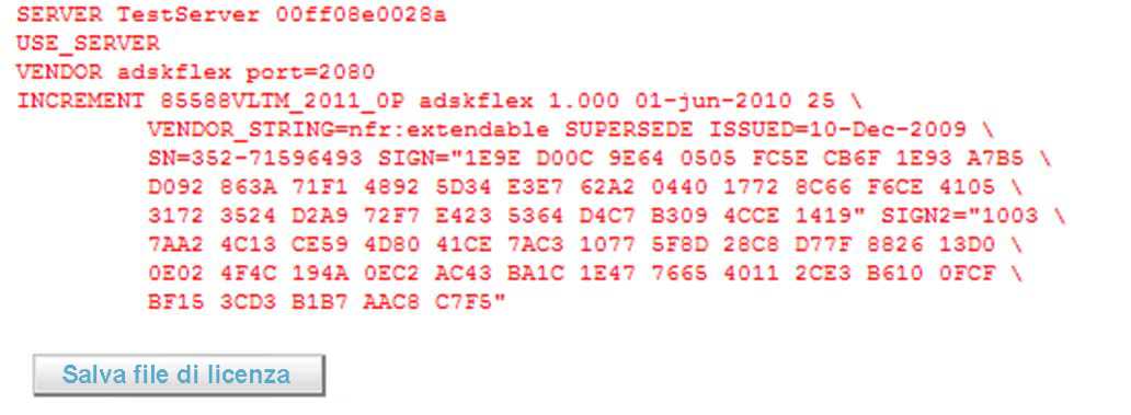 - Una volta visualizzate le informazioni sulla licenza, salvarle nell'apposito file.