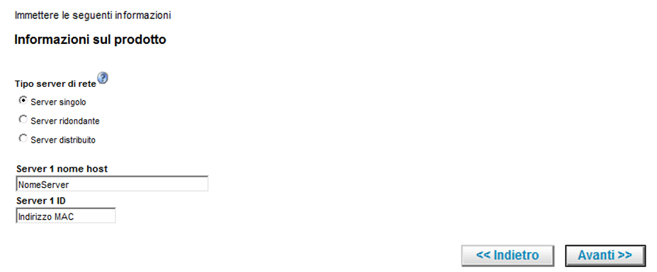 Nota: Il tipo e il nome del server delle licenze devono corrispondere a quelli utilizzati durante la configurazione del server delle licenze nei passaggi precedenti.