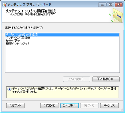 - [メンテナンス タスクの順序を選択]ダイアログで、順序を次のように設定します。