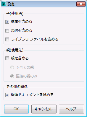 [設定]機能では、関係、添付、抽出に関する環境設定を設定できます。[設定]機能には、特定の Vault 操作の実行中に表示される[チェックイン]、[ステータスを変更]、[Pack and Go]などのダイアログからアクセスすることができます。