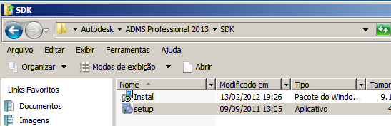 - C:\Arquivos de programa (x86) \Autodesk\ADMS (versão do produto) 2012\SDK para sistemas operacionais de 64 bits