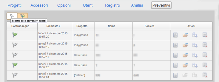 - Mostra solo preventivi aperti