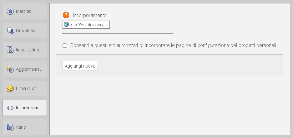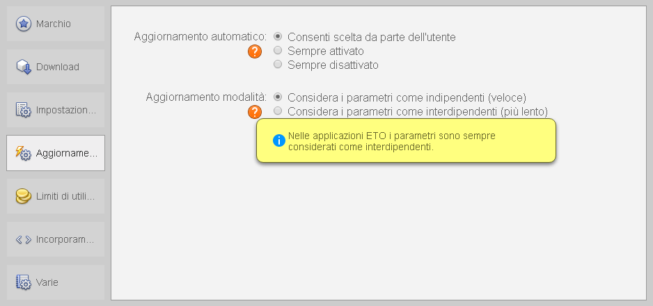- Consenti scelta da parte dell'utente: questa opzione è l'impostazione di default, che consente di scegliere se l'opzione è attivata o disattivata.