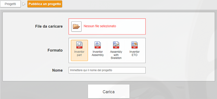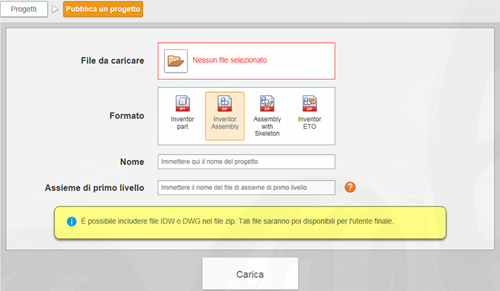 - Nella barra File da caricare, selezionare la cartella richiesta, quindi individuare e selezionare il file di assieme.