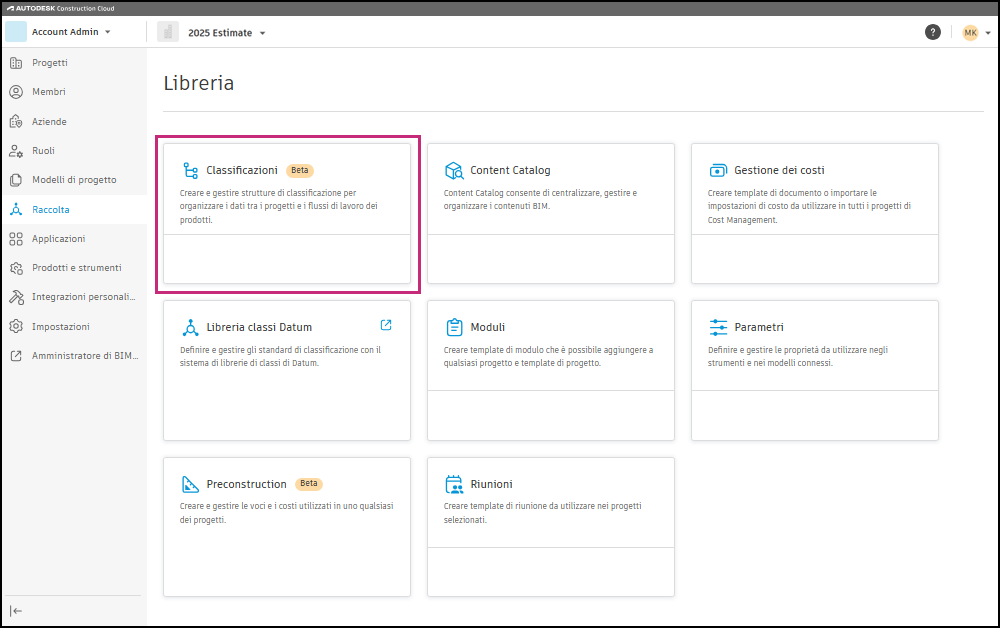 La gestione delle strutture di classificazione per l'account nella libreria consente di standardizzare e riutilizzare i codici in tutti i progetti e i template di progetto.