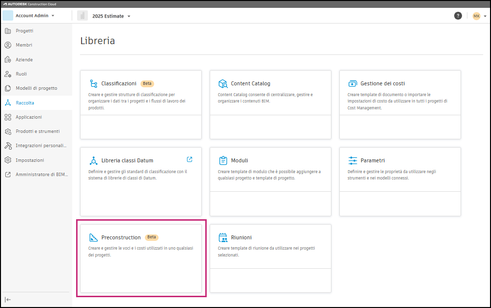 gli elementi della libreria di pre-costruzione sono disponibili solo per gli abbonati al pacchetto Pre-costruzione.