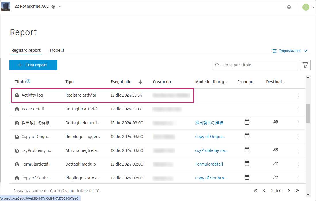 È inoltre possibile accedere al report nel Registro report.