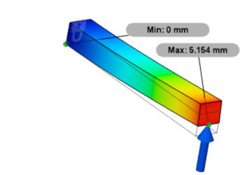 Una trave che mostra lo spostamento quando viene applicato un vincolo fisso ad un'estremità e all'altra viene applicato un carico. |