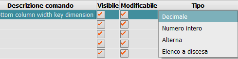 Tipo: fare doppio clic sul valore Tipo per visualizzare le opzioni disponibili. Tipo controlla i valori consentiti che verranno mostrati come attributi per la quota chiave selezionata, nella pila.