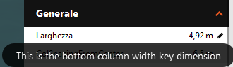 Etichetta: il valore dell'etichetta per una quota chiave rappresenta il nome che viene assegnato all'attributo corrispondente nella pila. Ad esempio, la modifica di "BottomColumnWidth" in "Width" nella colonna dell'etichetta aggiorna la visualizzazione di "BottomColumnWidth" in "Width" nella pila.