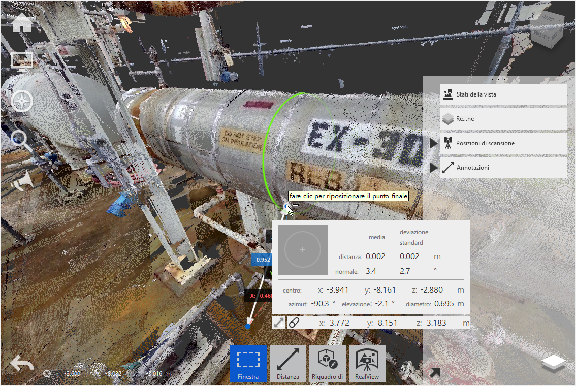 Le quote del cilindro possono essere visualizzate facendo clic sul punto finale del cilindro dopo aver posizionato una misurazione.