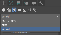 コンボ ボックスでライトのタイプを選択することができる、汎用の Arnold ライト オブジェクトがあります。パラメータは、選択したタイプに従って動的に変更されます。このオブジェクトは、Create タブのライト メニューの下に表示されます。