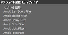 ライト フィルタは、MAXtoA では Light Modifiers として使用できます。Arnold ライトが選択されている場合は、ライト フィルタが使用可能になります。