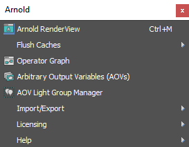 Arnold RenderView ウィンドウは、Arnold メニュー内にあります。