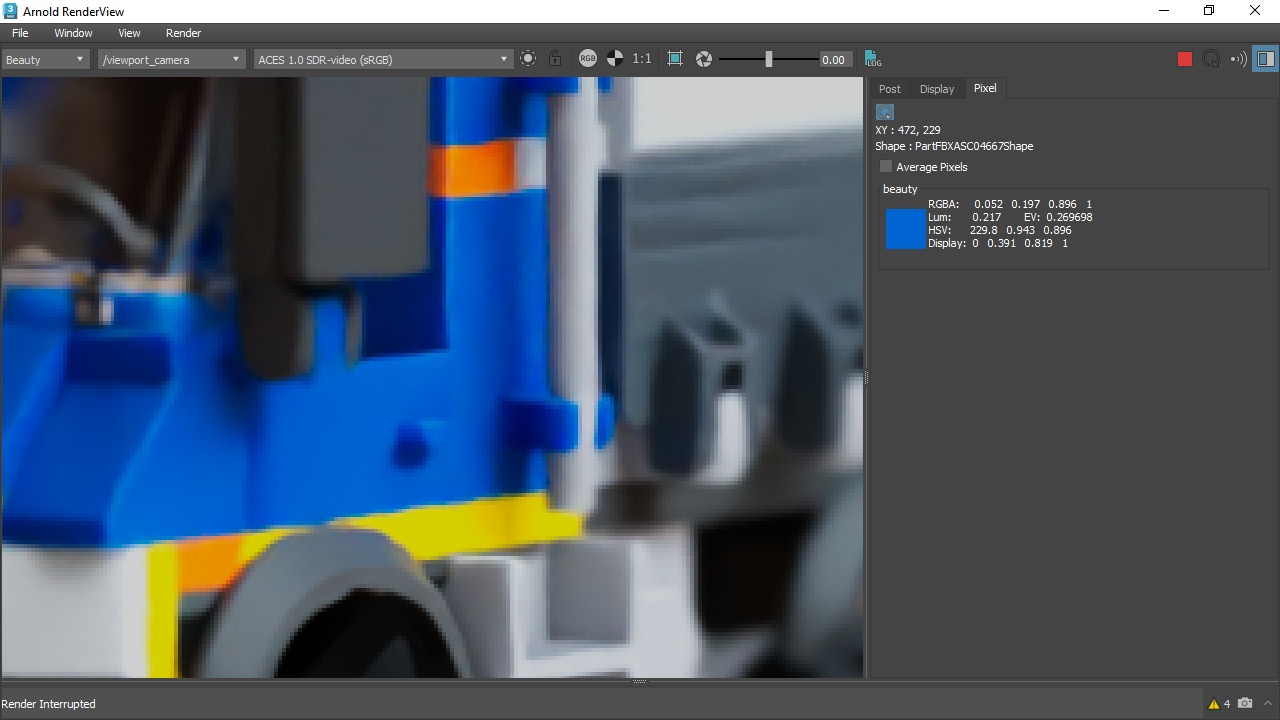 すべての AOV で、マウス カーソルの位置のピクセルの詳細な値が表示されます。