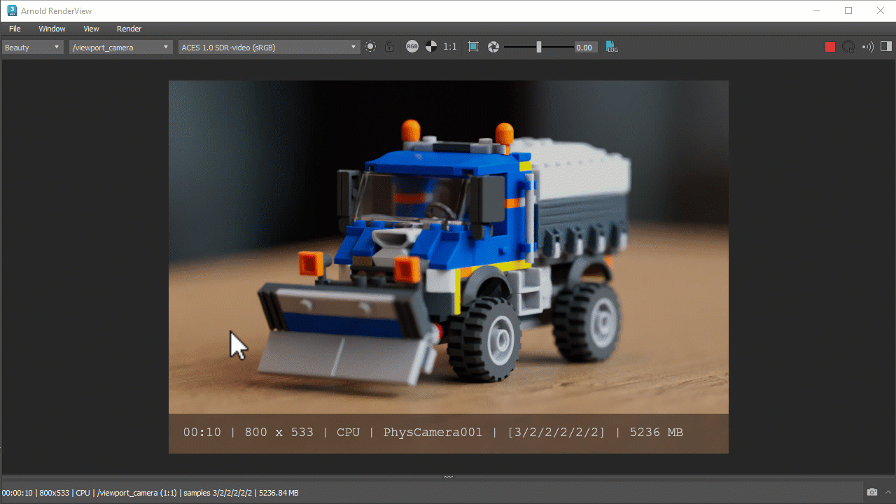 既定では、RenderView は IPR セッションと同じように動作し、負の AA サンプル数から開始して多数のステップでサンプル数を増やすことによってシーンを徐々にレンダーします。レンダーの更新はシーンの変更ごとに自動的にトリガされます。この動作は、次の RenderView オプションを変更することで変更できます。